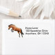 Original fine art design of a jumping bay horse by designer Carolyn McFann on customisable labels for equestrian sport fans.