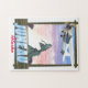 Juneau Alaska travel poster print of a light aircraft flying over the Alaskan landscape in a cute vintage style.