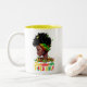 This ceramic coffee mug is shown in a great Juneteenth Vibes Only women art print.
