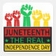 Social justice and Black History word art sticker features raised fists with "Juneteenth - the Real Independence Day" text in Pan Africa colours combo