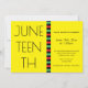 An invitation for a Juneteenth celebration. The invite is yellow with black, red, and green stripes on the back. Customise the text, add this invitation to your cart, and celebrate freedom, ancestors, and the progress to come.