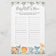 Jungle animals themed baby shower ABC's race game card features a watercolor jungle animals illustration and watercolor greenery eucalyptus garland and elegant handwritten style font.