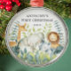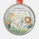 Cute baby's first Christmas ornament the sweetest little jungle animals framed with watercolor jungle leaves.