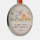 Cute baby's first Christmas ornament the sweetest little jungle animals set on a pink damask background.