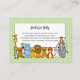 Jungle Animals books for Baby request card features a line of adorable jungle animals with a neutral mint green frame.