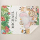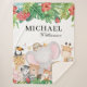 Lovely jungle animals with tropical leaves and flowers borders and personalised name and last name.