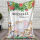 Jungle Animals + Personalised Name Green Leaves Sherpa Blanket