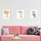 Add the finishing touches to your baby’s nursery or child’s bedroom with these gorgeous art prints! Design features jungle animals (lion, giraffe, zebra), pink bubble gum, pink watercolor flowers and greenery.