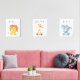Add the finishing touches to your baby’s nursery or child’s bedroom with these gorgeous art prints! Design features motivational quotes (be brave, stand tall, be kind) and jungle animals (lion, giraffe, elephant).
