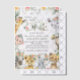 Invite friends and family in style and set the tone for your special day with this charming baby shower invitation. Design features jungle animals (giraffe, monkey, zebra, lion, elephant, cheetah, meerkat, rhino), hibiscus flowers and eucalyptus leaves on white background.