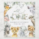 Add a personal touch to your birthday celebration with these stylish and memorable party items! Design features jungle animals (giraffe, monkey, zebra, lion, elephant, cheetah, meerkat, rhino) and eucalyptus leaves on white background.