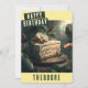 A cute birthday card featuring a jungle themed birthday cake on the front with "Happy Birthday", all-caps bold font. Personalise the front by adding your name(s). The inside of the card features space for your typed or handwritten message.
