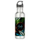 A chic black background. Green and blue tropical rain forest, jungle. Palm tree and banana leaves, foliage with red and orange florals, flowers. A black and orange frame with space for your name and monogram letter. The name is written with a modern hand lettered style script.