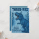 Step back in time with this bold and vintage-style Three-Rex birthday invitation, perfect for your little dino lover’s big day! Featuring a blue-toned jungle backdrop and a roaring T-Rex in party mode, this design blends classic charm with prehistoric fun. Intricate leafy illustrations frame the scene, giving it a timeless, safari-meets-jungle look.