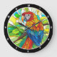 Jungle Harmony" - Stained Glass Parrot Large Clock