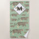 Jungle Jaguar Animal Pattern Initial Monogram Beach Towel