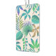 Lush tropical leaves seamless pattern in blue and green tones over a white background.