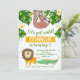 Looking for a let's get wild, safari or jungle animals birthday invitation? This cute design features three watercolor safari or jungle animals on a white background. The design features some foliage, a banner and some light green polka dots. For more designs in this theme please visit the store. This boy's let's get wild, safari or jungle birthday party invitation is ready to be personalized.
