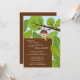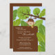 Adorable baby boy Baby Shower invitation featuring a cute monkey hanging off a tree branch set on a jungle safari leaf background. Matching items available in our shop. Perfect for a baby boy baby shower.