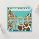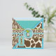 Safari prints, giraffe, zebra, and cheetah and a polka dot pattern, with monkey hanging on a vine and 3D look tags, bows, trims first birthday invitation card.