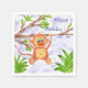 Some cute paper napkins for a kid's birthday party with the whimsical illustration of a jungle monkey and the words "Happy Birthday !" © ArianeC Illustrations
