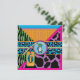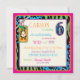 Safari prints, giraffe, zebra, and cheetah and a polka dot pattern, with monkey hanging on a vine and 3D look tags, bows, trims sixth birthday invitation card.