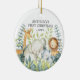 Cute baby's first Christmas ornament the sweetest little jungle animals framed with watercolor jungle leaves.