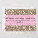 This adorable invitation is perfect for your young child, featuring a monkey, baby zebra, lion and giraffe. Completely customisable, change font or font colour. Add child's name, address and age. This invite adds an extra space to let you add directions or a special message. You may also remove the pink bar on the back and text to just have a beautiful patterned background. Your choice! Thank you cards, stamps and matching envelopes and t-shirts for your child's special day are available in our store.