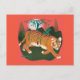 A prowling tiger in the jungle with coral sky and green trees — to send a postcard message you can customise.