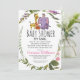 Share your joy with friends and family before your new baby arrives with this sweet tropical jungle safari baby shower by mail invitation. This cute design features an elephant, giraffe, tiger, and a monkey surrounded by a botanical leaf pattern. This popular typography can be customised to change the colour and font style or keep it as it is for your convenience. So cute for a boy or a girl baby shower.