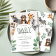 Introducing our Tropical Jungle Safari Animals Boy Baby Shower Invitation, the perfect choice for a safari-themed baby shower. This invitation captures the essence of a tropical jungle with its whimsical and modern design. Featuring adorable zoo animals like elephants, giraffes, monkeys, zebras, and ostriches, it appeals to both boys and gender-neutral celebrations. The cute and wild one theme adds a touch of charm, while the calligraphy typography adds elegance. Set in a lush forest backdrop, this invitation is a delightful way to invite your guests to celebrate the upcoming arrival. Get ready for a wild and memorable baby shower with our captivating invitation.
