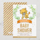 Amaze your guests with this cute lion theme baby shower invitation featuring an adorable little cub and beautiful green leaves with vibrant typography on a white background. Simply add your event details on this easy-to-use template to make it a one-of-a-kind invitation. Flip the card over to reveal a faux gold glitter stripes pattern on the back of the card.