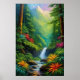 Venture into the heart of the jungle, where nature's splendour reigns. Amidst the lush foliage, a tapestry of beautiful flora unfolds, a riot of colours and shapes. A small cascade descends gracefully, joining a rushing stream that weaves its path through the verdant landscape. In the distance, majestic mountains stand as silent guardians, completing this breathtaking scene of untamed beauty.