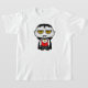 Cute cartoon baby vampire with big yellow cat eyes, dressed in a snappy red vest and black cape.