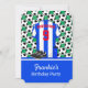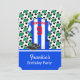 A cool invitation to a soccer themed event like a Birthday or slumber party. This modern style football invitation feature a soccer jersey on the front with customisable surname and number , a pair of soccer cleats and a water bottle ,as well the event details. The background features black and white soccer balls on a soccer field back drop. On the back is a template to add your own soccer event details . If you require a different colour of this design contact us via the giftsbonanza store prior to purchase to discuss