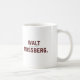 This mug says "When I'm finished this coffee I'm going to punch you in the junk." Don't make empty threats.