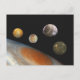 This stunning composite view of the Jovian system shows the planet Jupiter with its Great Red Spot along with its four largest moons. These are Io, Europa, Ganymede and Callisto. These four are collectively known as the Galilean satellites. All together, this collection makes an artistic impression of an important region of our Solar System. The images were taken by NASA’s Voyager and Galileo spacecraft.