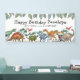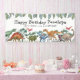 Step into the prehistoric era with our Jurassic themed party banner! Boasting of a white background that can transform into any shade of your choice, our banner uniquely merges the wilderness of jungle green foliage with an adorable assortment of watercolor dinosaurs. To give it a personal touch, our banner also features a customisable kids birthday celebration text template, making it a fun and memorable addition to your child’s special day.