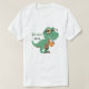 A cheerful cartoon dinosaur, round, friendly, and full of character stands proudly with a wide smile on his face. Perched on his nose are oversized reading glasses, giving him an adorably studious look. He holds an open book between his tiny claws, completely absorbed in his latest read. His expression is bright, clever, and unmistakably geeky, making it clear he’s a true “Jurassic Nerd.” The design blends prehistoric charm with modern nerdiness, creating a playful and clever t-shirt that appeals to Dino lovers and bookworms alike.
