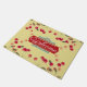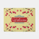 A fresh and lovely vintage inspired cherry design customisable welcome mat. Make this retro welcome mat your very own with customisable text and colour options. Available in two sizes. Non slip latex backing and vibrant fade resistant print - this little mat is approved for indoors and covered-outdoor areas. Makes a sweet and personal housewarming gift. "Life is just a bowl of cherries - so live and laugh at it all!"