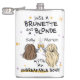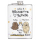 The flask itself is fine. It’s a cheap flask, obviously bought in bulk, however am prepared to overlook that. Given that it is a personalized item, I would have liked to have seen gift boxing instead of the generic packaging. Terrible printing, and/or quality. It’s a cheap, tacky vinyl. It is not cut straight and is also applied in a way that it is overhanging the bottom, causing the glue to catch on items and it will eventually roll and tear, damaging the wrap.