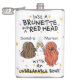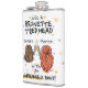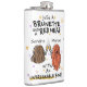 The flask itself is fine. It’s a cheap flask, obviously bought in bulk, however am prepared to overlook that. Given that it is a personalized item, I would have liked to have seen gift boxing instead of the generic packaging. Terrible printing, and/or quality. It’s a cheap, tacky vinyl. It is not cut straight and is also applied in a way that it is overhanging the bottom, causing the glue to catch on items and it will eventually roll and tear, damaging the wrap.