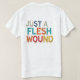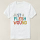 This eye-catching t-shirt design features the phrase "Just a Flesh Wound" in a bold, multicolored graffiti style. The splattered paint effect adds a touch of urban energy, making it perfect for fans of street art and classic comedy.