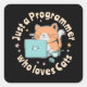 Awesome and funny design showing a cat on the computer and the saying "Just a programmer who loves cats". A must for all programmers and cat lovers.