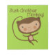 A cute brown monkey with a very long tail and brown text that reads Just Another Monkey on monkey T-shirts, mugs, bags, cards, pillows, stickers, magnets, keepsakes, wall clocks, and other items for kids and adults.