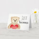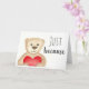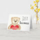 This "just because" watercolour card may seem simple, but it is very versatile. The front shows a big friendly bear holding a plush red heart. The interior contains the text "Just because – here's a big bear hug for you!". I have left the interior text editable, so that you can customise it to your needs.