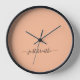 Elegant just breathe peach fuzz black yoga clock.