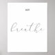 Just Breathe typography inspirational quote. Black and white minimalistic word wall art for meditation and relax. Perfect print for home décor or yoga lover gift.