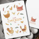 This design features the most adorable chickens, feathers, and eggs surrounding the text, "Just Chicken (checking) in". Let this cute card make your friends giggle with a funny hen pun - perfect for chicken lovers! Show someone special you're thinking of them with this original art card. Customise by adding your signature to the back side for personalised stationery. Back signature line reads the pun, "Your fr-hen-d (friend)".