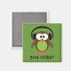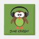Cool customisable green square Just Chillin' magnet with a cute funky cartoon owl wearing headphones. A fun original gift - ideal for teenagers & music lovers.